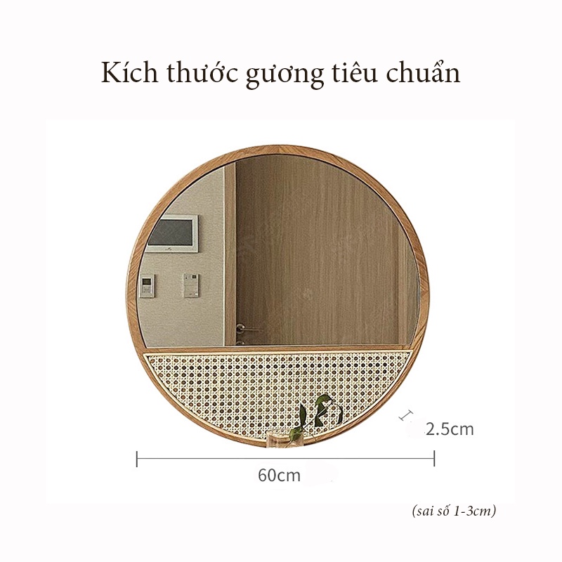 - Kích thước: Gương tròn để bàn có đường kính 60cm; độ dày 2,5 cm