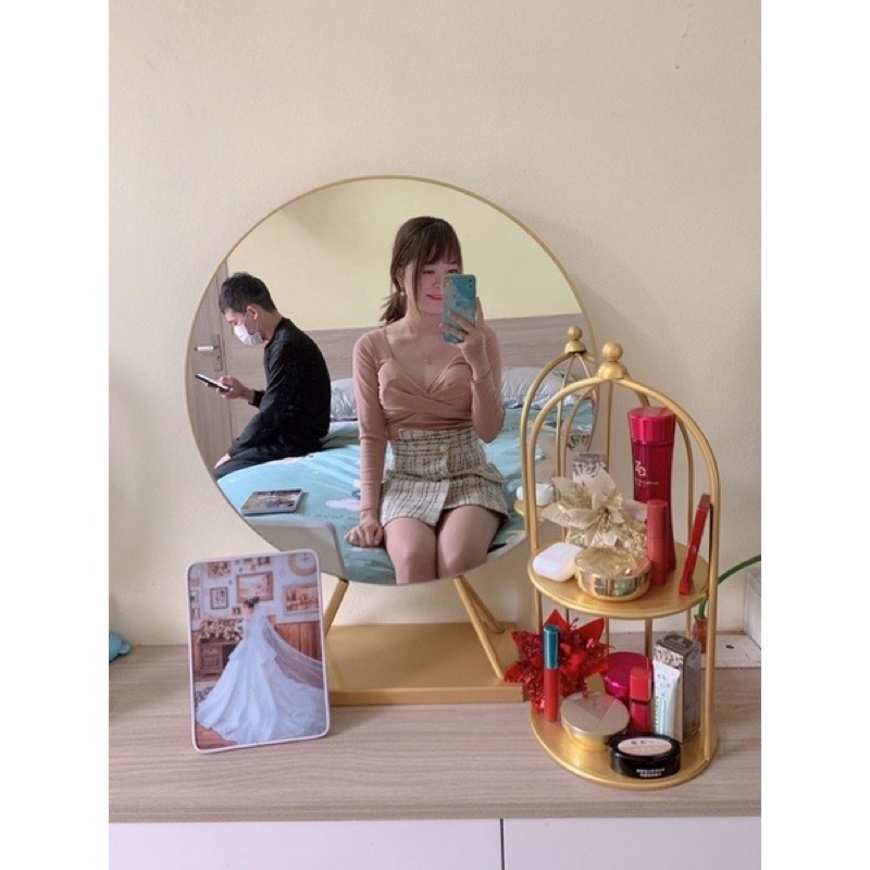 -Gương để bàn kích thước rộng 50cm…-Khung sắt sơn tĩnh điện được sơn 4 lớp độ bền rất cao..