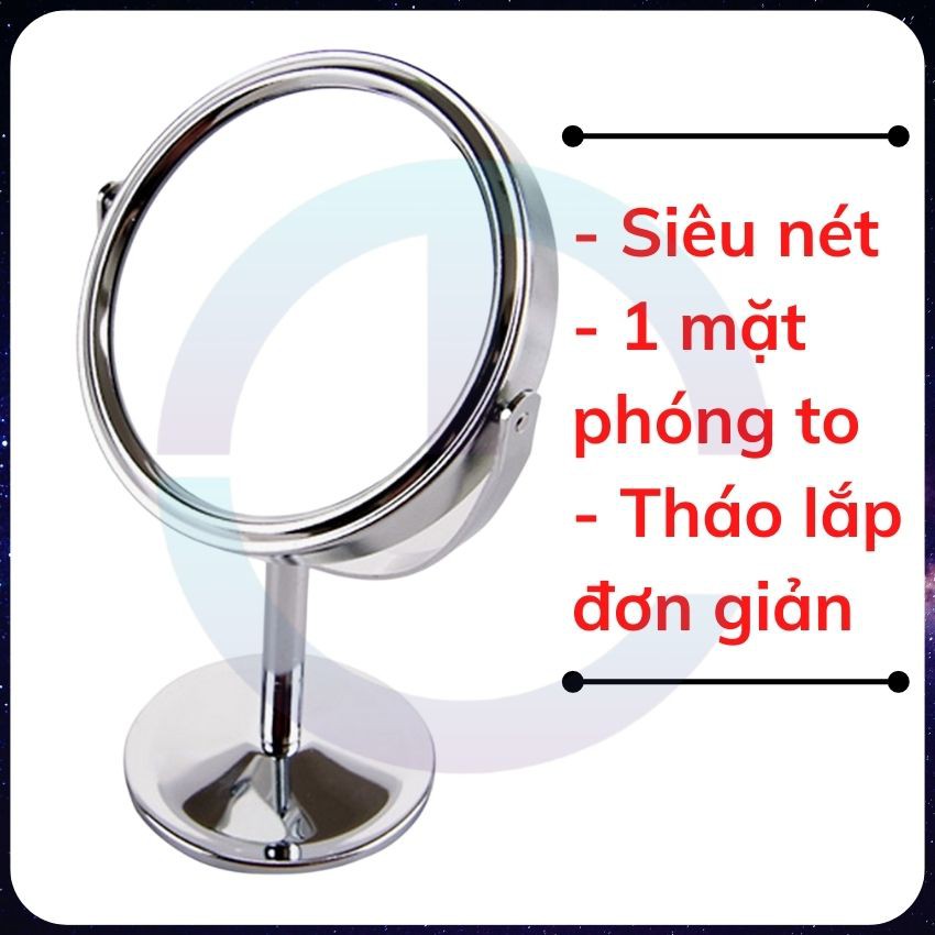 Gương Để Bàn Trang Điểm Xoay 360 Độ 2 Mặt, 1 Mặt Phóng To Để Trang Điểm Mắt