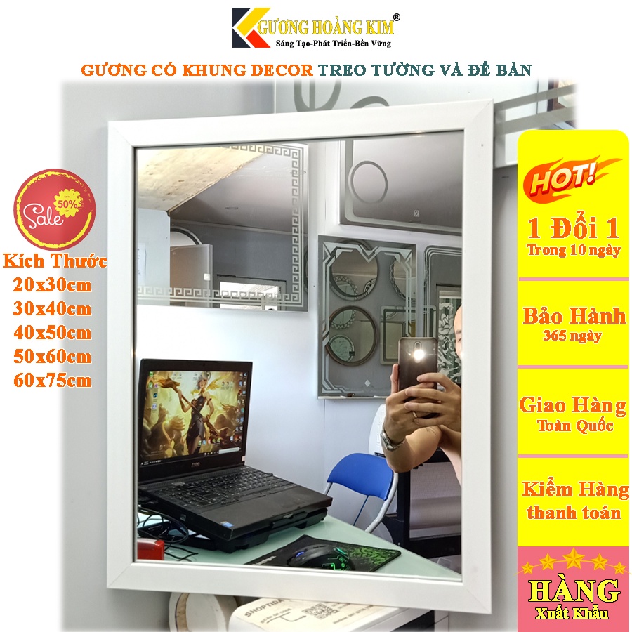 gương để bàn treo tường trang trí decor viền màu đen trắng nâu vân gỗ kích thước 50x60 cm guonghoangkim mirror HK5001