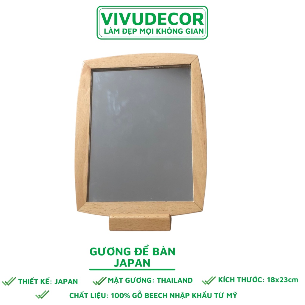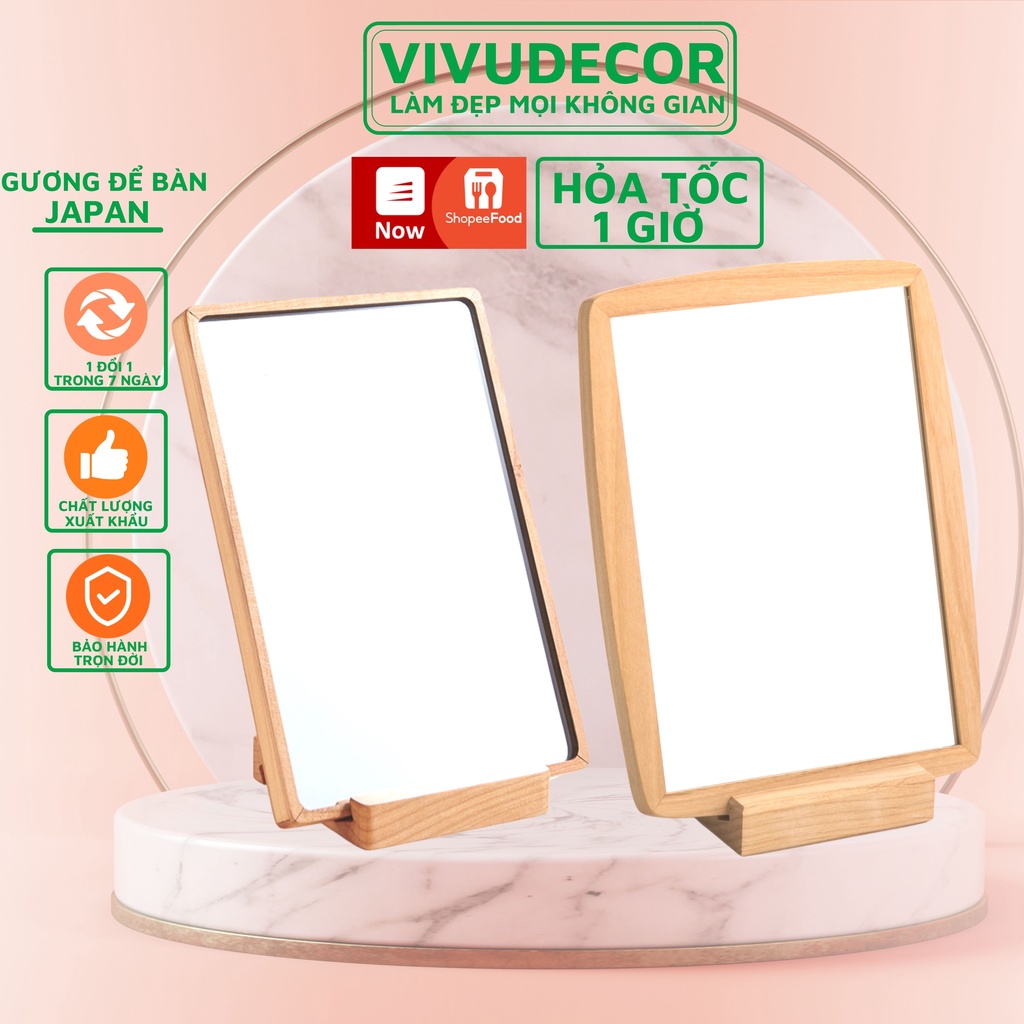 Nhà cửa & Đời sống > Trang trí nhà cửa > Gương || Gương để bàn Vivudecor 100% gỗ tự nhiên nhập khẩu từ Mỹ, Gương soi trang điểm cao cấp thiết kế theo phong cách JAPAN.Còn hàng