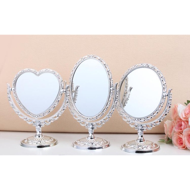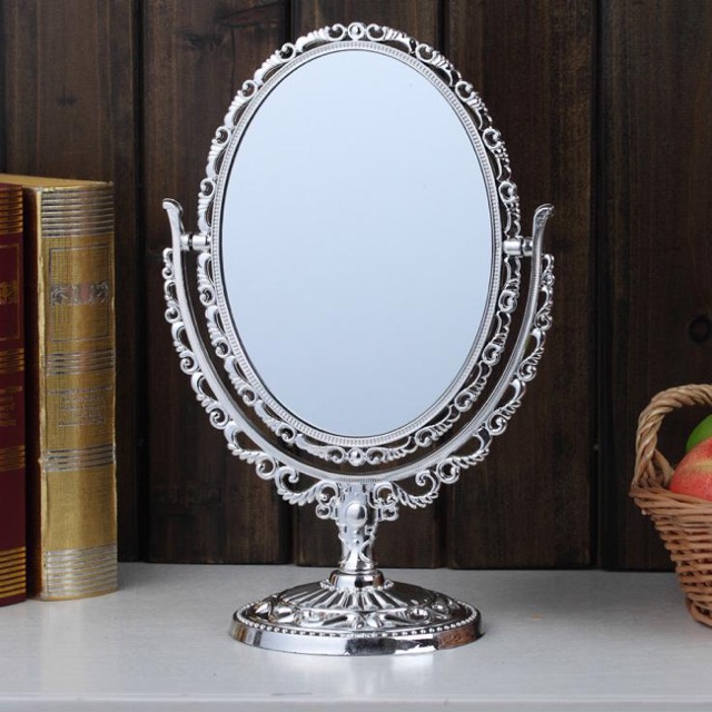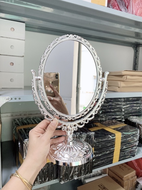 Gương để bàn phong cách cổ điển cho các nàng- Gương ABS mạ màu bạc , giả kim loại , phong cách hoa văn cổ điển , tạo vẻ sang trọng mà không rẻ tiền như các mẫu màu bình thường