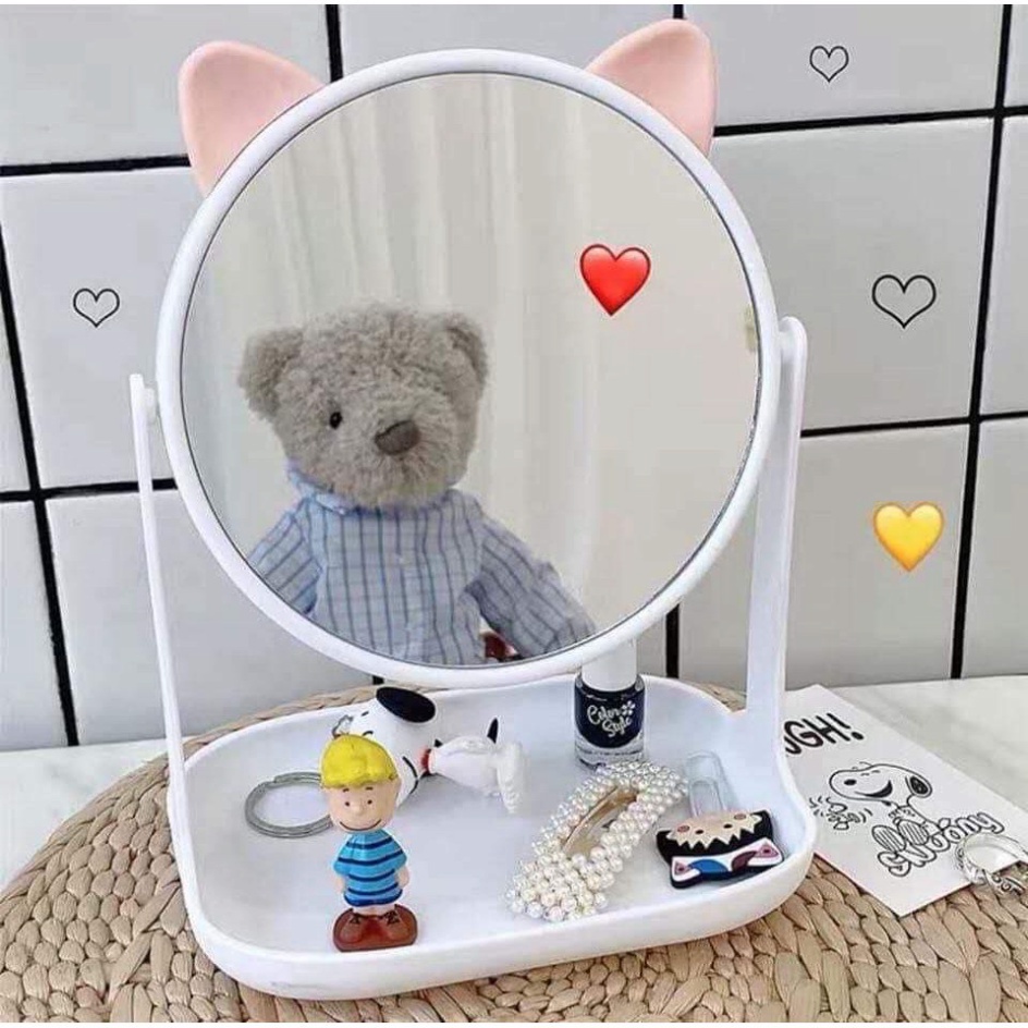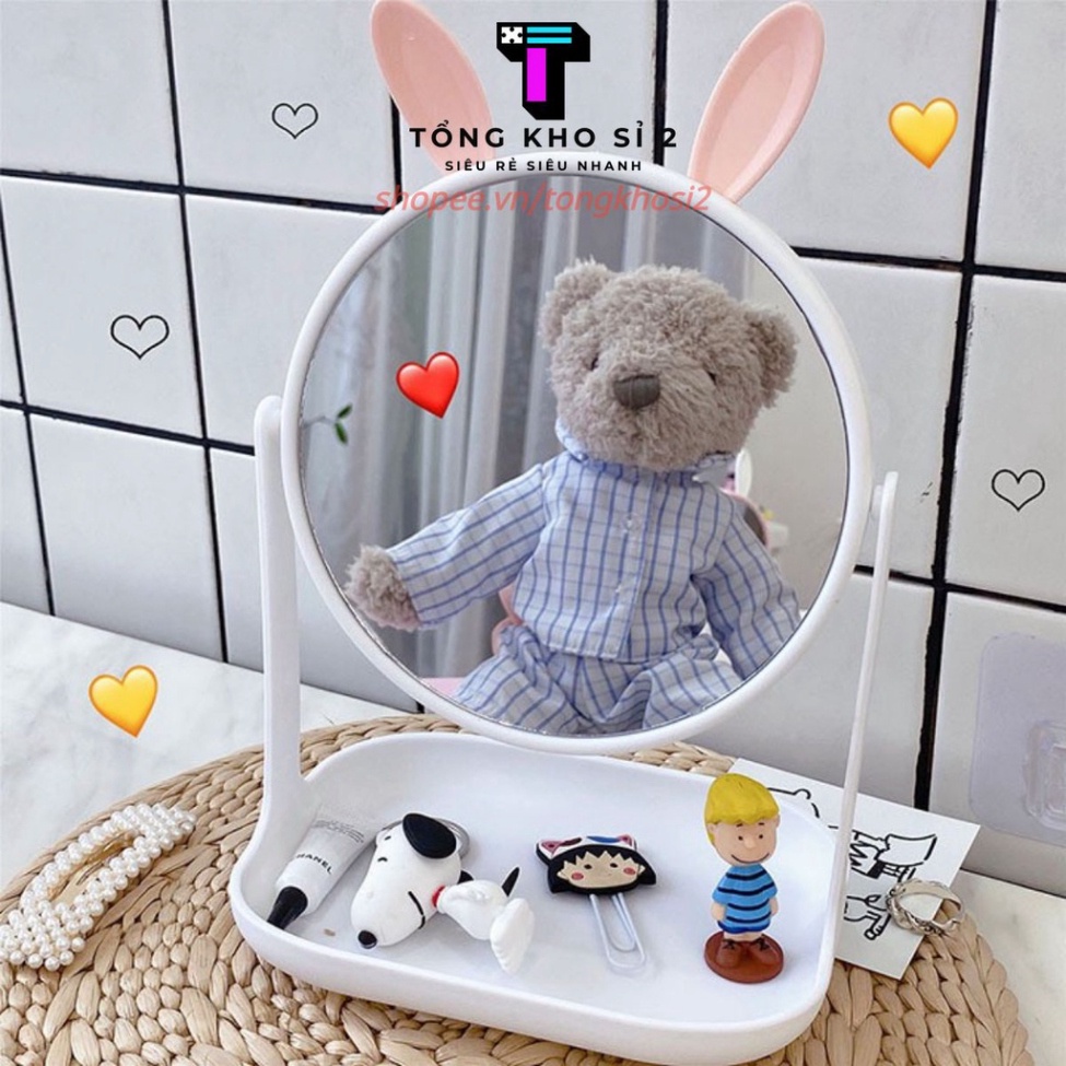 Gương Để BànFREESHIPGương Tai Thỏ Tai Gấu Mèo Để Bàn Có Chỗ Để Đồ Tiện Lợi
