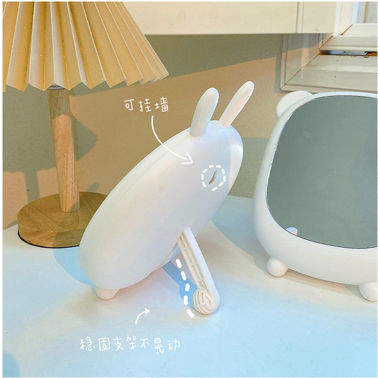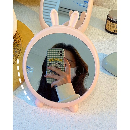 Gương decor để bàn tai gấu thỏ xinh xắn có màu hồng và trắng