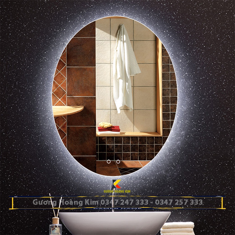 Gương đèn led trang trí makeup cảm ứng treo tường oval elip bầu dục nhà tắm phòng wc 50x70,60x80cm guonghoangkim HK-2002
