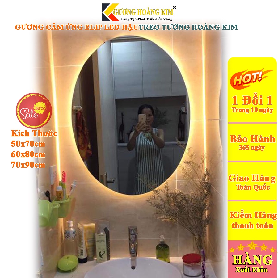 Nhà cửa & Đời sống > Trang trí nhà cửa > Gương || Gương đèn led trang trí makeup cảm ứng treo tường oval elip bầu dục nhà tắm phòng wc 50x70,60x80cm guonghoangkim HK-2002Còn hàng