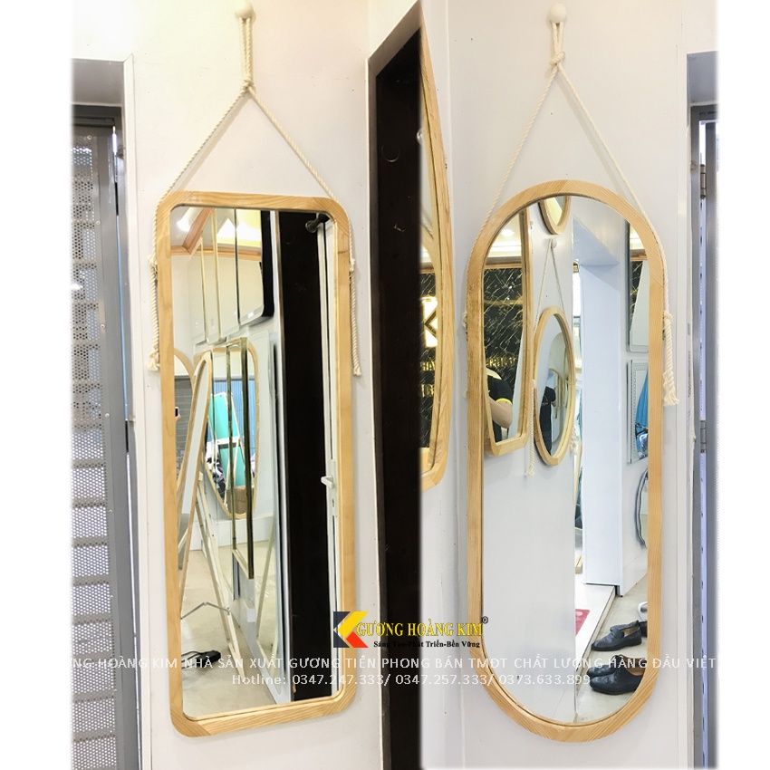 Gương đứng soi toàn thân viền gỗ dựa tường treo tường dây thừng giá rẻ, tặng phụ kiện kt 45x120cm guonghoangkim mirror
