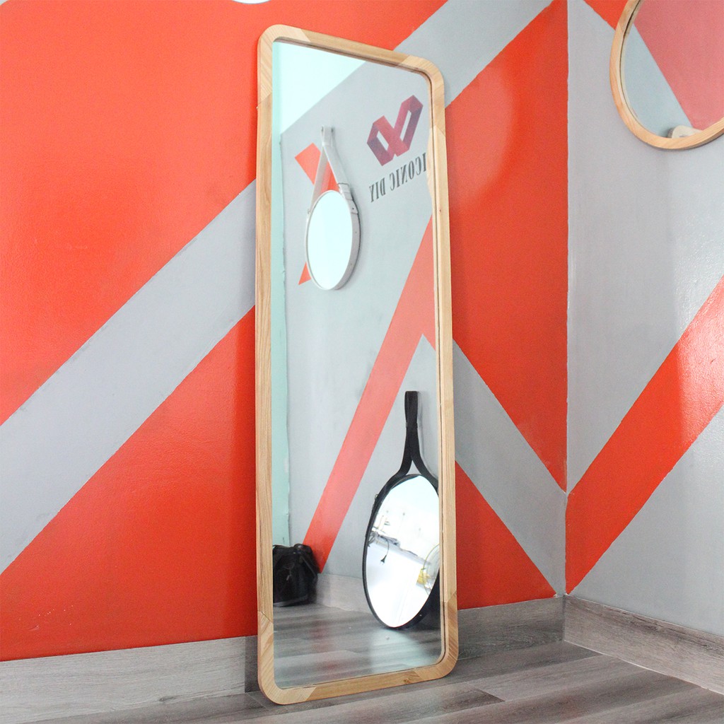 Thiết kế gương đứng toàn thân với khung gỗ sồi với kích thước lớn dựa vào tường thiết kế chỉnh chu đơn giản nhưng tinh tế từng chi tiết.