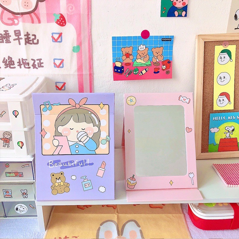 Gương gấp trang điểm máy tính để bàn để bàn cô gái dễ thương gương trái tim gương di động gương ký túc xá ins Hàn QuốcThông tin chi tiết sản phẩm: Gương trang điểm có thể gập lại hình hoạt hình