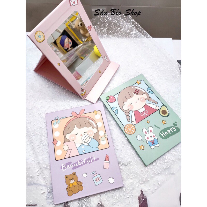 ☘☘ Gương thiết kế bao bọc bằng giấy êm ái, hạn chế va đập, vỡ vụn cả gương và vỏ nhaMàu sắc kute đáng yêu, các bạn ko chỉ ngắm mình qua gương mà ngắm cả chiếc gương nha