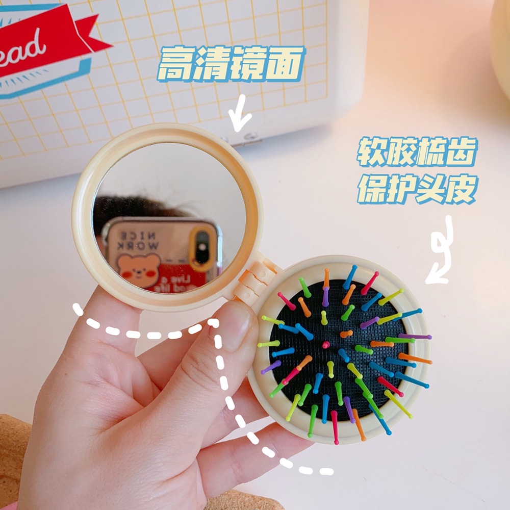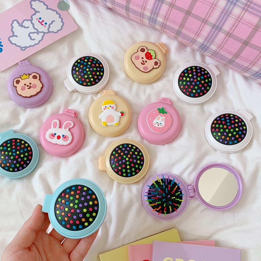 Nhà cửa & Đời sống > Trang trí nhà cửa > Gương || Gương gấp mini kèm lược massage gỡ rối hoạt hình tiện lợiCòn hàng