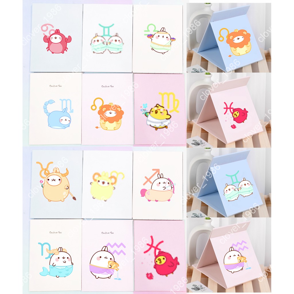 Giới thiệu Gương gập quả bơ GGI4 hoa cúc GD yakult trà sữa boba tea 12 cung hoàng đạo gấu thỏ cherie berie 13*17cm