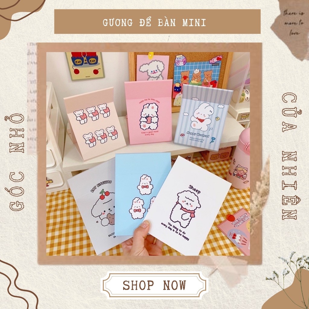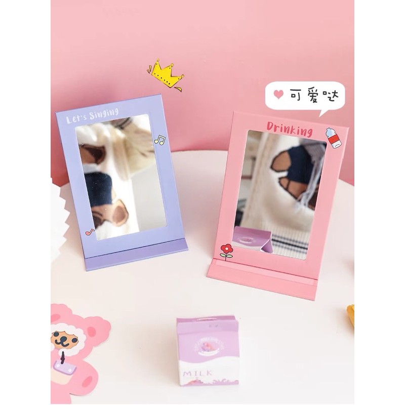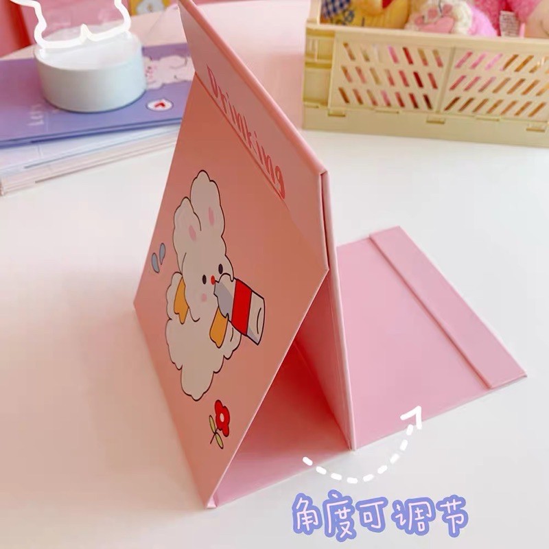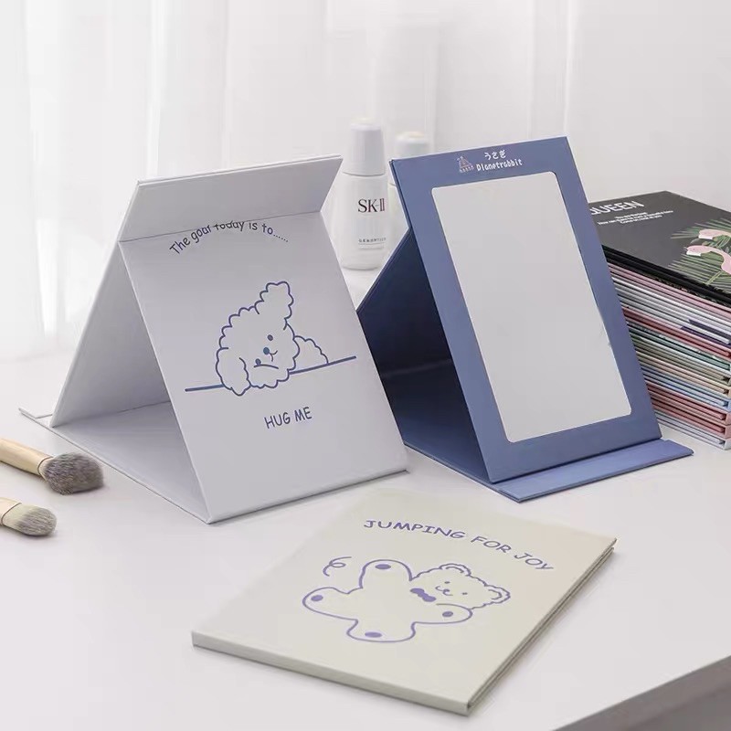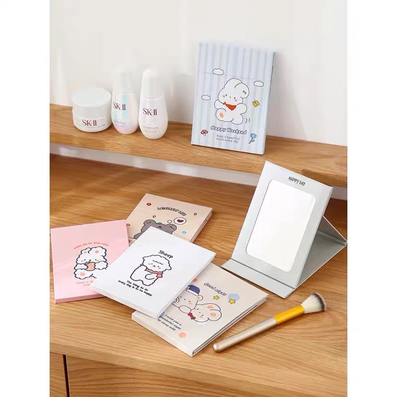 Gương trang điểm để bàn họa tiết hoạt hình dễ thương gấp gọn lại đượcChất liệu: Kính + Khung Giấy Gấp