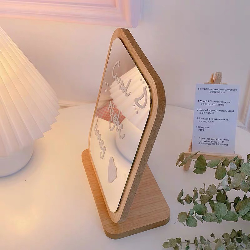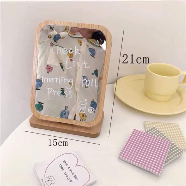 Nhà cửa & Đời sống > Trang trí nhà cửa > Gương || Gương gỗ để bàn Béo shop , gương trang điểm đế gấp gọn dùng decor góc làm việc học tập G01Còn hàng
