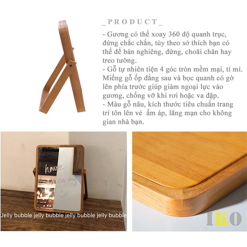 Bạn có sở thích làm đẹp, chăm chút cho bản thân mỗi ngày? Và muốn lựa chọn cho mình 1 chiếc gương giúp bạn thực hiện các việc đó dễ dàng. Đồng thời tôn lên vẻ đẹp mộc mạc ấm cúng cho căn phòng của bạn, tạo phong cách cho căn phòng thêm lung linh, tự tin selfies với bạn bè?Gương gỗ để bàn cao cấp phong cách Hàn Quốc sẽ giúp bạn thực hiện các điều đó trong tích tắc. Gương có vỏ bọc ngoài làm bằng chất liệu gỗ thịt tự nhiên, gương sáng đều dày dặn khi soi thấy hình ảnh thật của khuôn mặt, xứng đáng làm người bạn thân thiết không thể thiếu của mỗi cô gái, chàng trai.