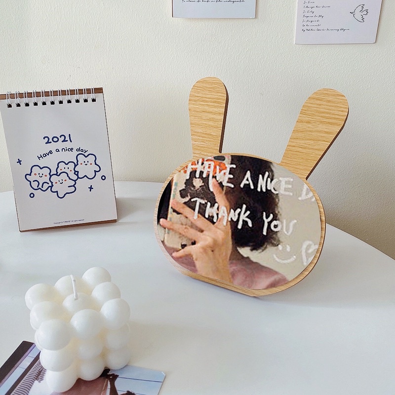 Nhà cửa & Đời sống > Trang trí nhà cửa > Gương || Gương Gỗ Để Bàn Tai Thỏ Tai Gấu Siêu Dễ ThươngCòn hàng
