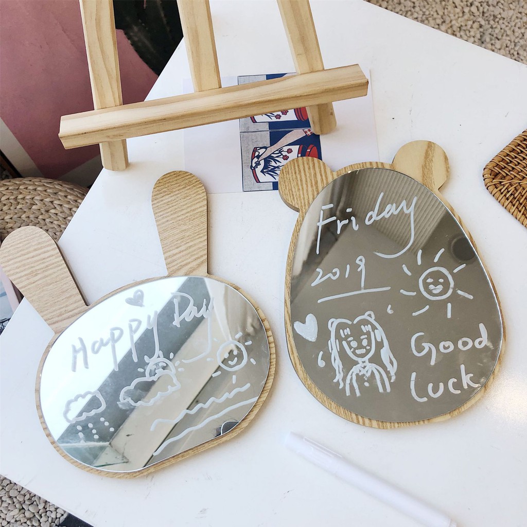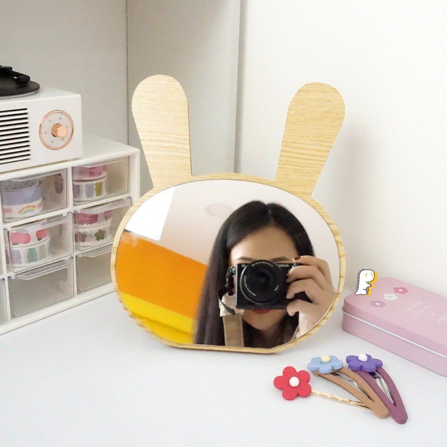 Nhà cửa & Đời sống > Trang trí nhà cửa > Gương || Gương gỗ để bàn trang điểm tai thỏ và tai gấu có đế đỡ cuteCòn hàng