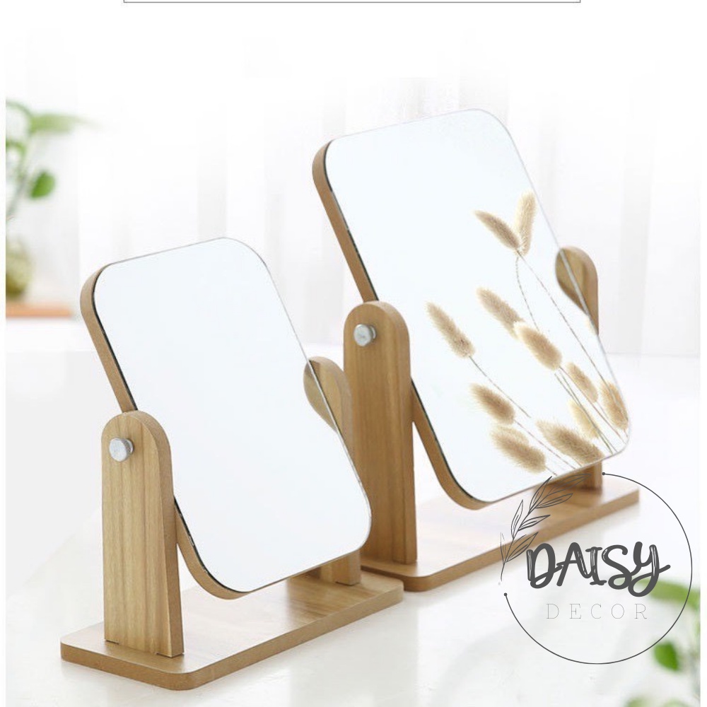 Gương gỗ hàn quốc - Gương để bàn decor vintage 2 size lựa chọn - HÀNG CÓ SẴN - Daisy.decor