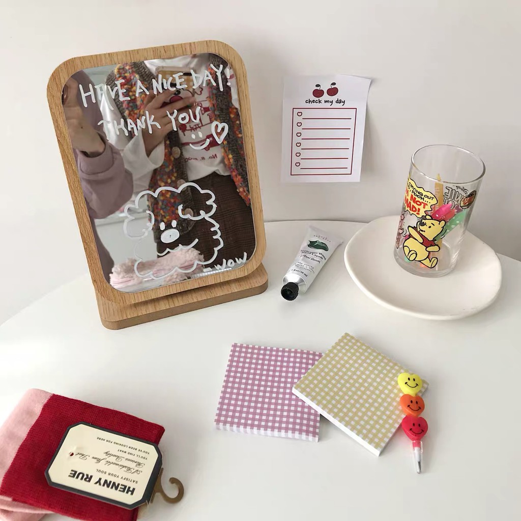 GƯƠNG GỖ HÀN QUỐC Gương Gỗ Để Bàn Tặng Kèm Bút Viết Mặt Gương Độc Đáo Cho Bạn Thỏa Sức Sáng Tạo