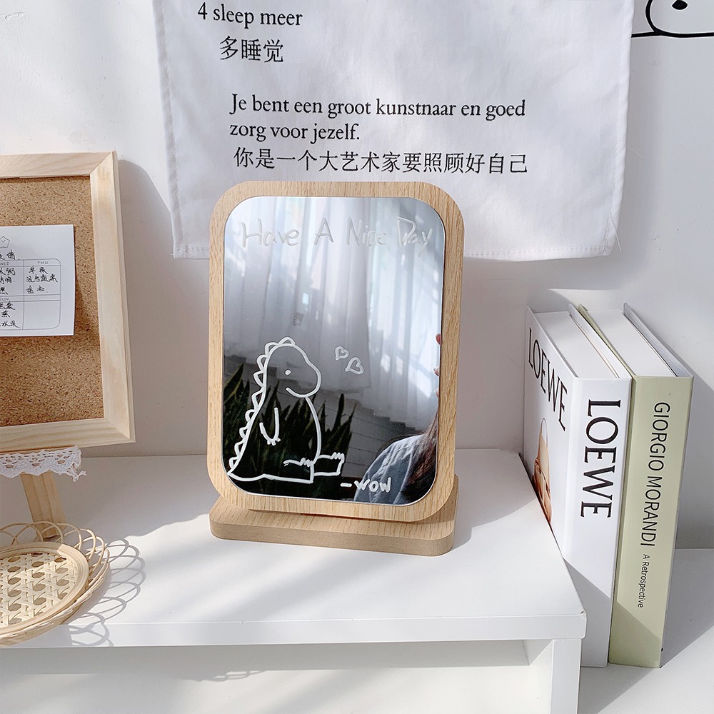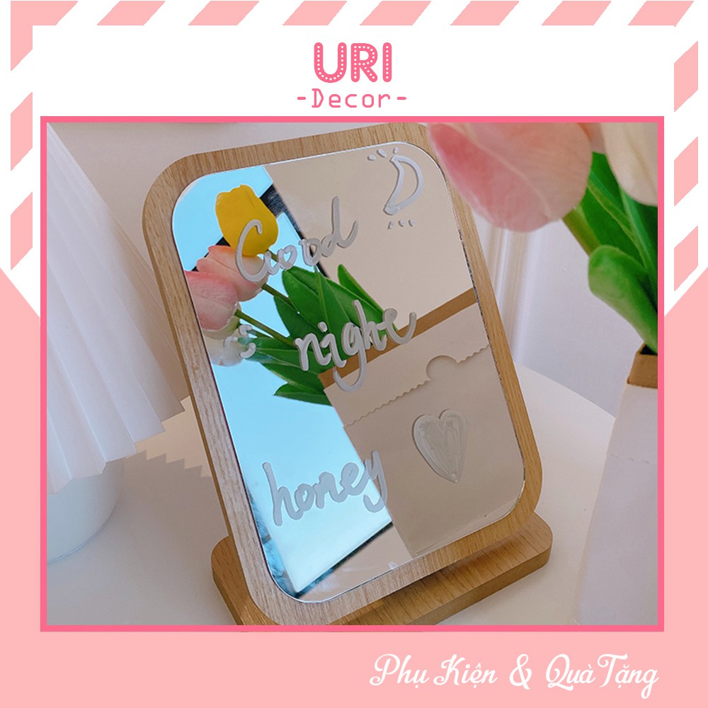 Nhà cửa & Đời sống > Trang trí nhà cửa > Gương || Gương gỗ trang điểm để bàn kèm bút Hàn Quốc ♥️ URI DECOR ♥Còn hàng