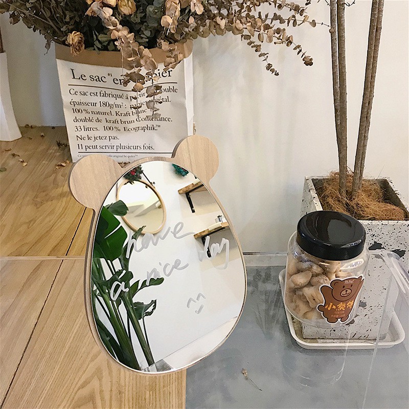 Giới thiệu Gương gỗ trang điểm để bàn kiểu dáng Hàn Quốc có chân đế đặt bàn chắc chắn, chất liệu gỗ cao cấp ins LYANWN