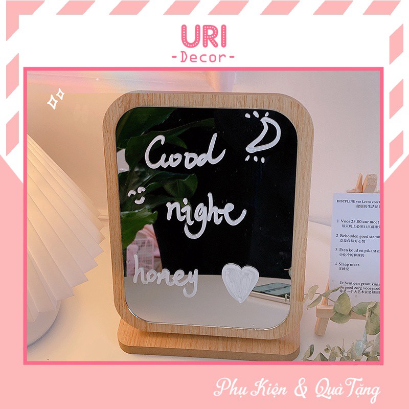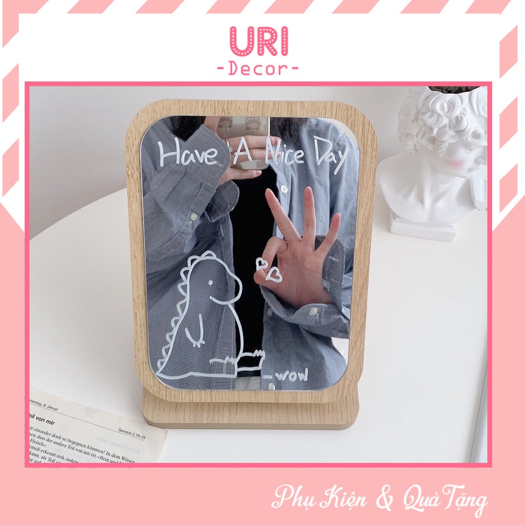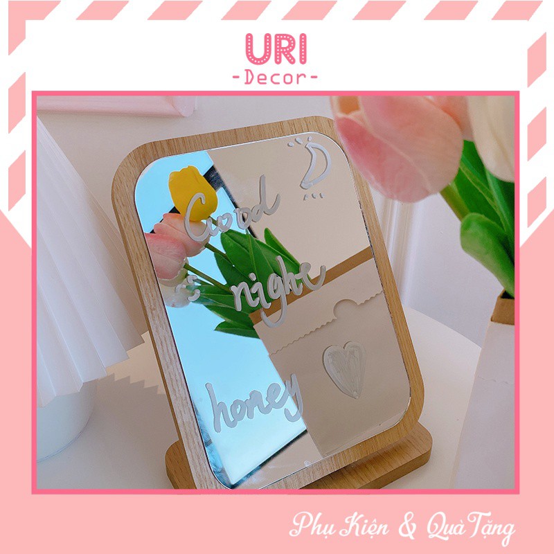 Nhà cửa & Đời sống > Trang trí nhà cửa > Gương || Gương gỗ trang điểm để bàn trang trí phòng ngủ, phòng tắm kèm bút vẽ xinh xắn URI DECORCòn hàng