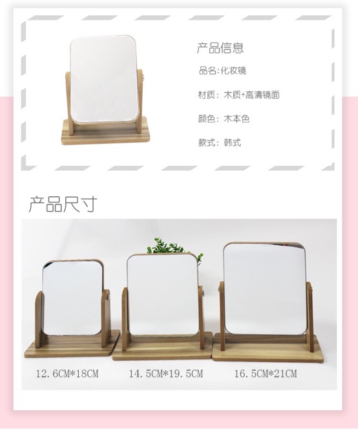 Nhà cửa & Đời sống > Trang trí nhà cửa > Gương || Gương gỗ trang điểm xoay 360 độ decor ulzzang (3 size)Còn hàng