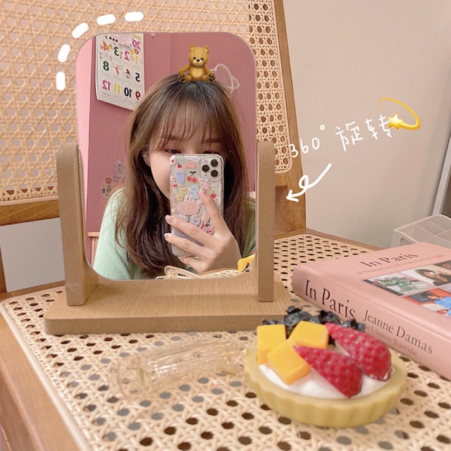 Giới thiệu Gương gỗ trang điểm xoay 360 độ decor ulzzang (3 size)