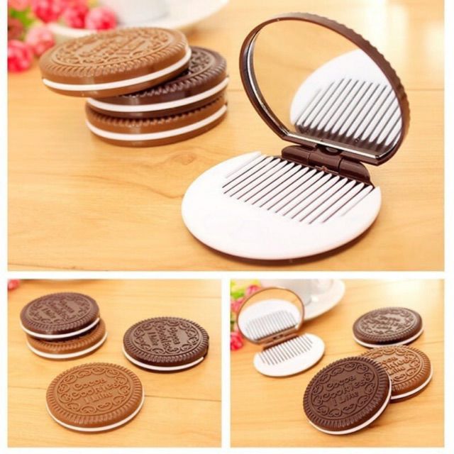 Thiết kế hình bánh cookie đáng yêu với lược., Gương có thể đứng trên bàn, hoặc bề mặt ngang để sử dụng thuận tiện., Kích thước sản phẩm: 66 * 12mmGiá SAHARA