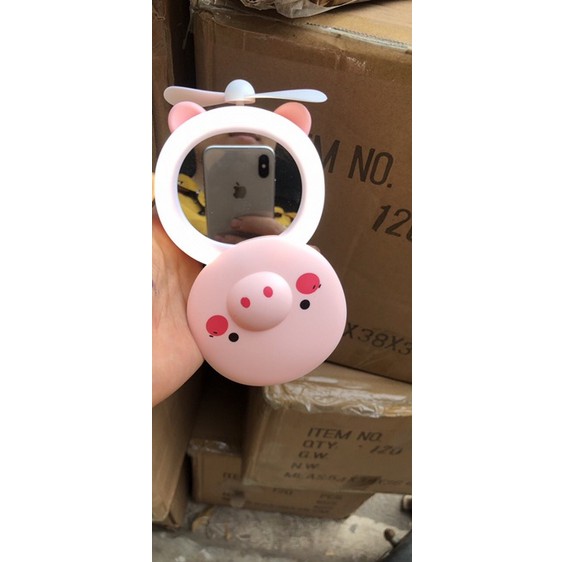 MÔ TẢ SẢN PHẨM : Gương, Đèn, Quạt Hình Lợn- Gồm Quạt + Gương Trang Điểm + Đèn Led- Quạt sạc kiêm đèn và gương trang điểm, vừa có chức năng quạt mát vừa có chức năng đèn thắp sáng và làm gương trang điểm