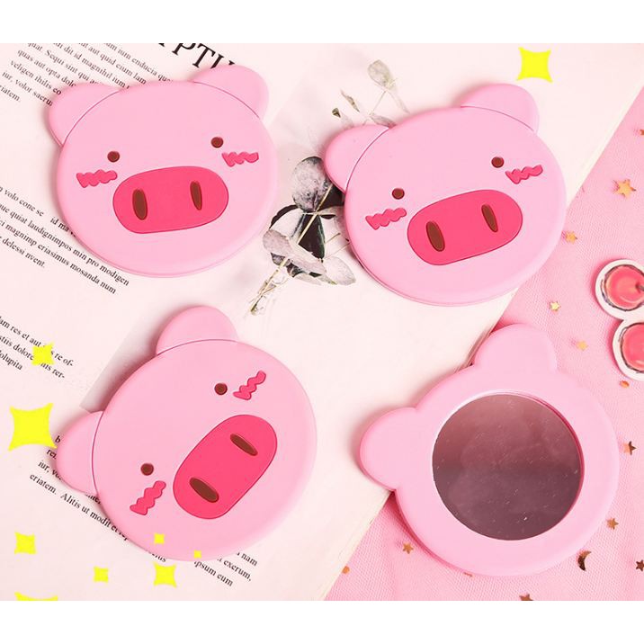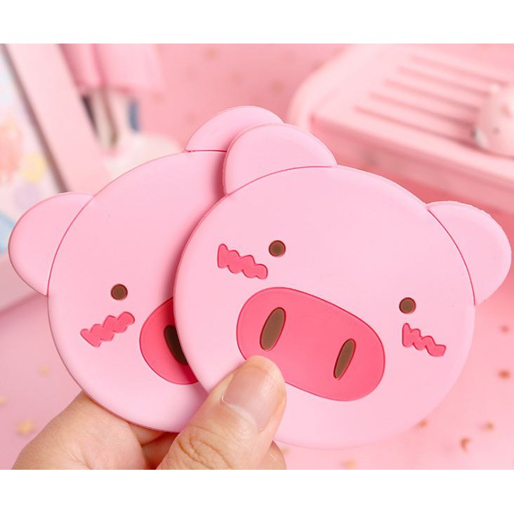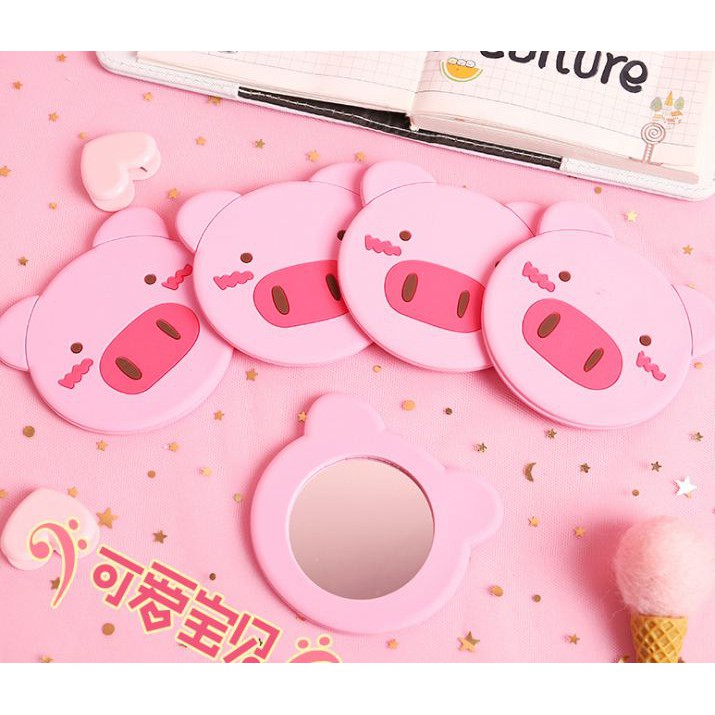 Gương cầmgương cầm tay 1 mặt, bọc da, Mặt sau là hình lợn hồng rất đáng yêu