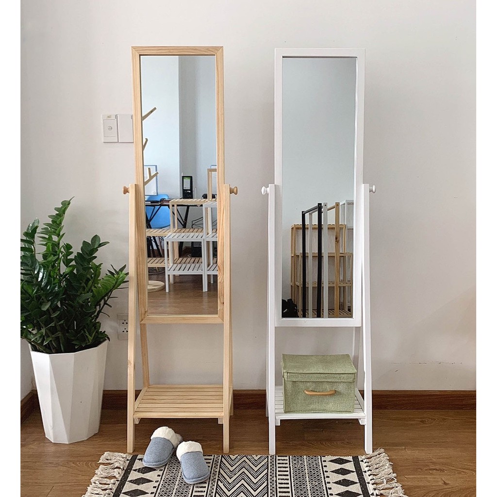 GƯƠNG KHUNG GỖ KÈM KỆ GỖ - GƯƠNG SOI TOÀN THÂN MÀU TRẮNG
