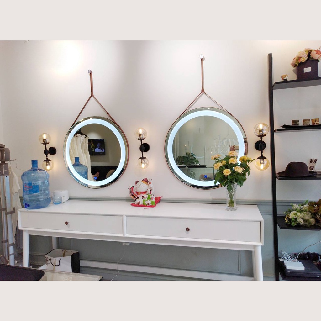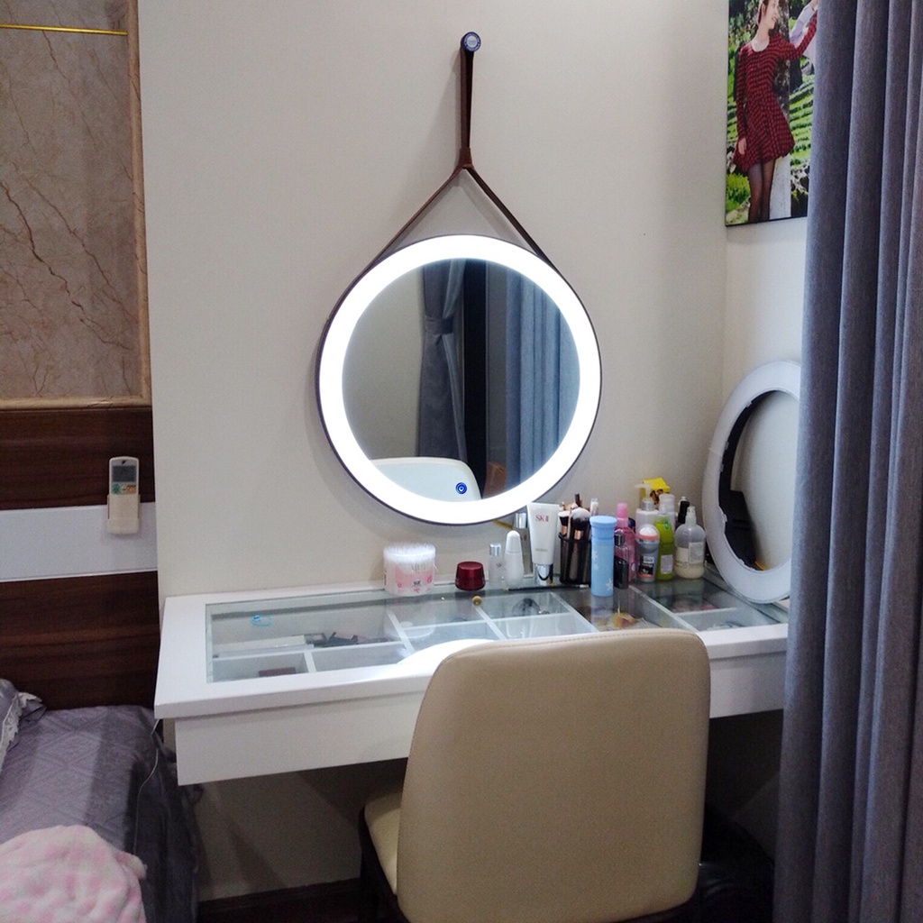 Nhà cửa & Đời sống > Trang trí nhà cửa > Gương || Gương khung gỗ treo tường, gương tròn dây da cao cấp, , gương trang điểm tích hợp đèn LED có nút cảm biến thông minhCòn hàng