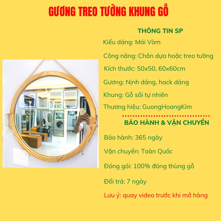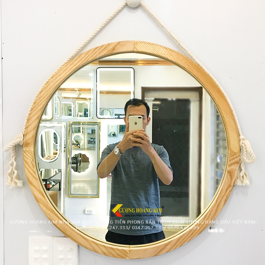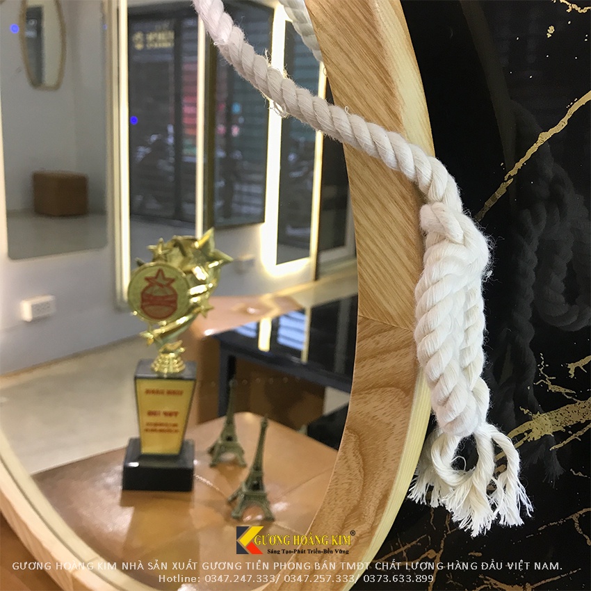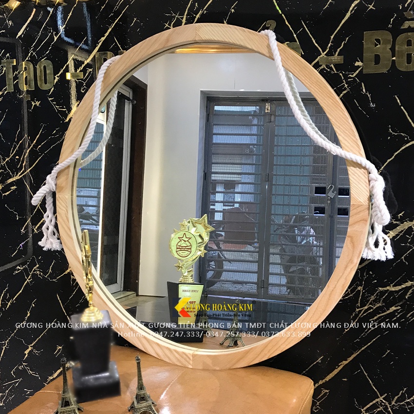 Gương để bàn trang điểm gương treo tường dây thừng makeup khung gỗ viền tự nhiên guonghoangkim KG-0005