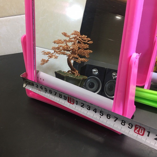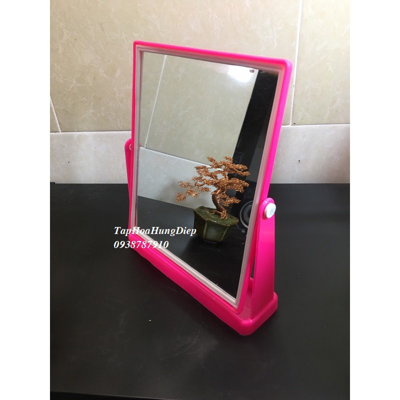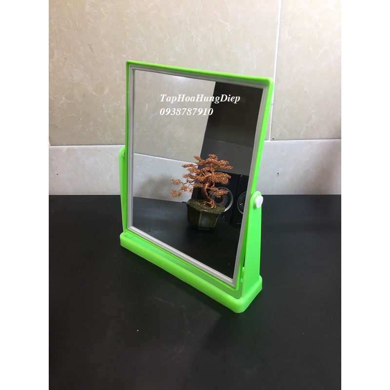 Gương , kiếng soi mặt có khung bằng nhựa chắc chắn , có chân đế lớn giúp gương đứng vững không bị ngã đỗ giúp chúng ta có thể soi gương ở mọi nơi trong nhà.* Kích thước sản phẩm : 20cm * 25cm .