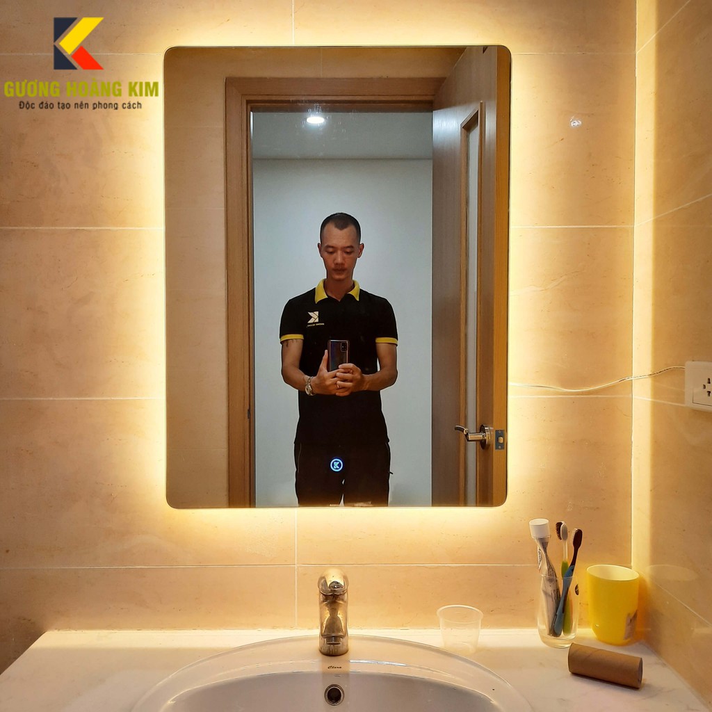 Gương led chữ nhật phòng tắm nhà tắm wc bàn trang điểm cảm ứng treo tường kích thước 80x100 cm guonghoangkim HK3012
