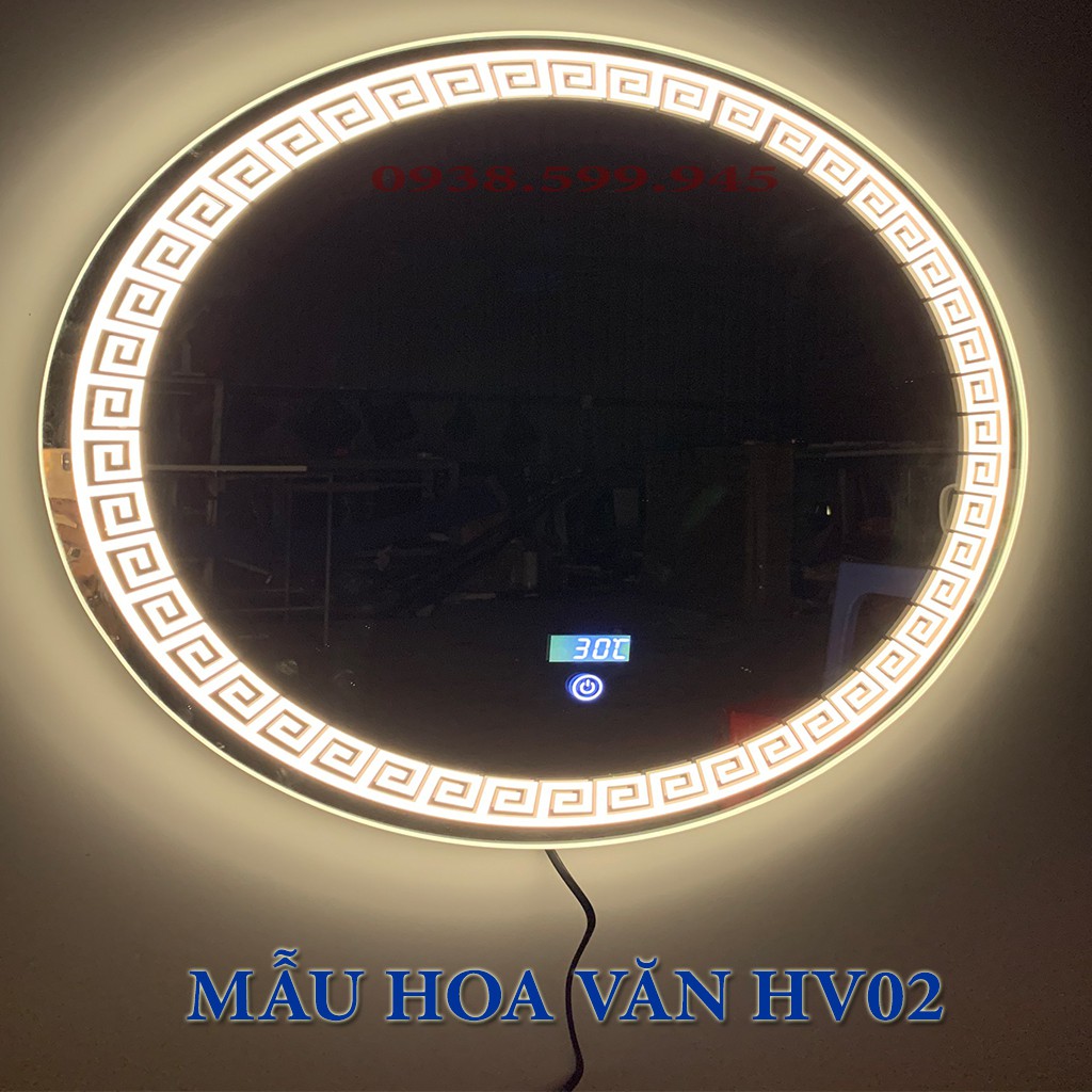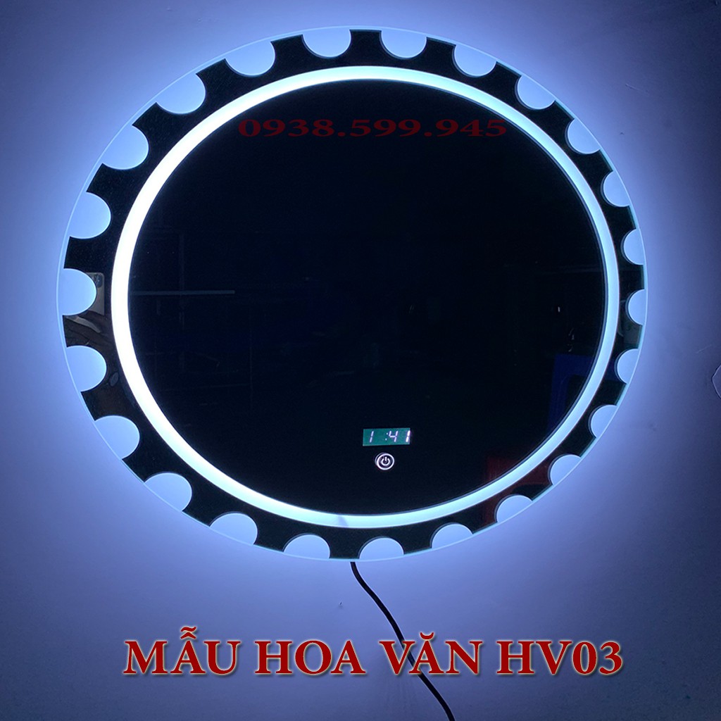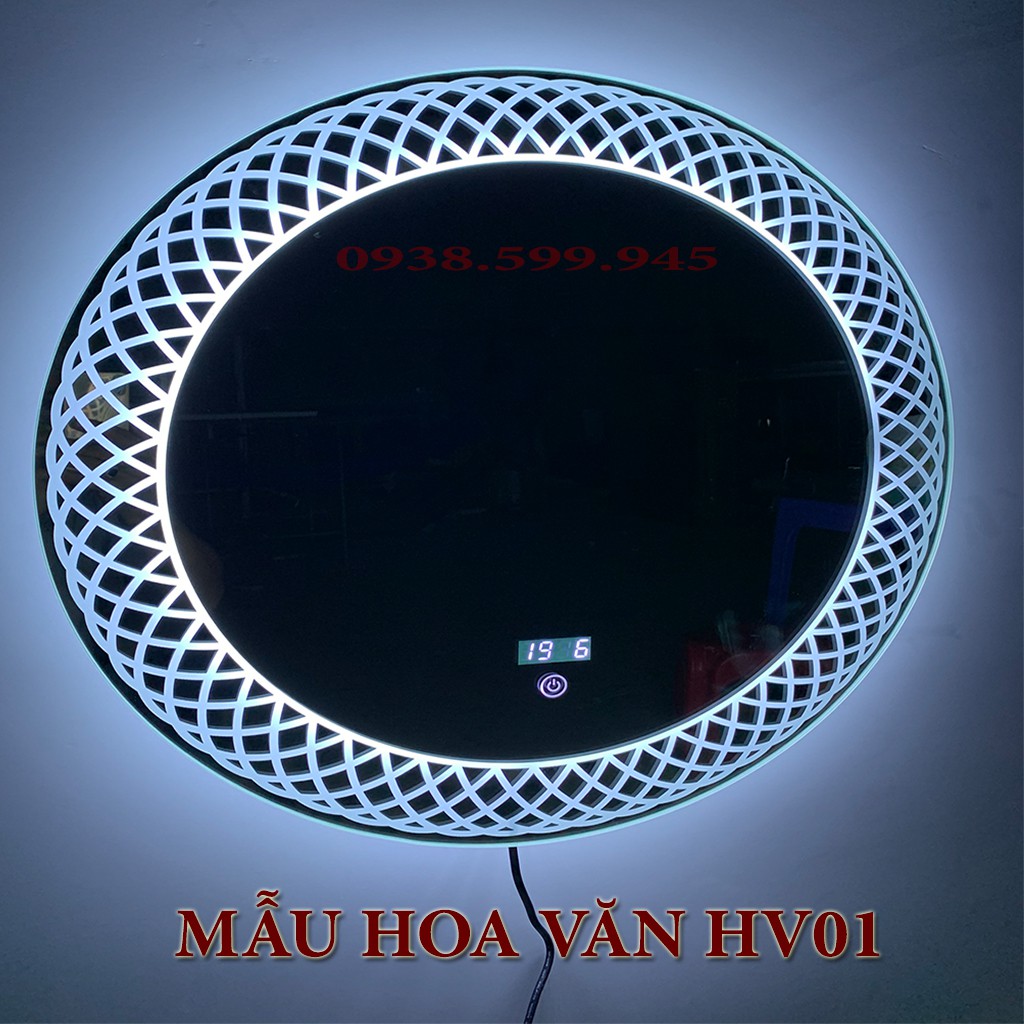 Gương LED hoa văn trang trí, công tắc cảm ứng, hiển thị giờ, nhiệt độ phòng