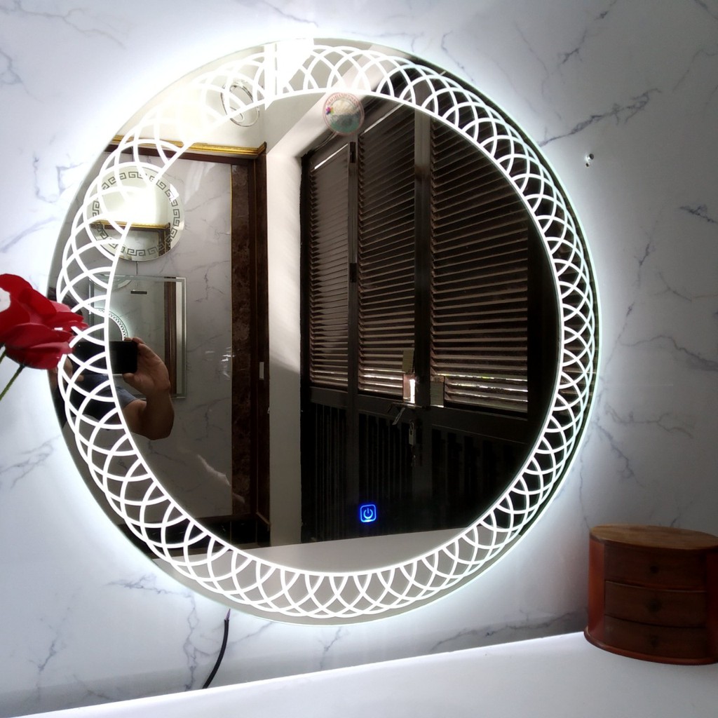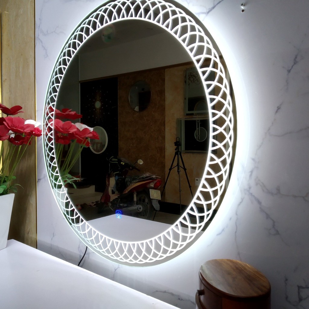 Gương LED Nghệ Thuật Decor LUXHOME Tròn 60 cm, Có Đèn, Cảm Ưng, Sấy Gương chống mờ hơi ẩm.
