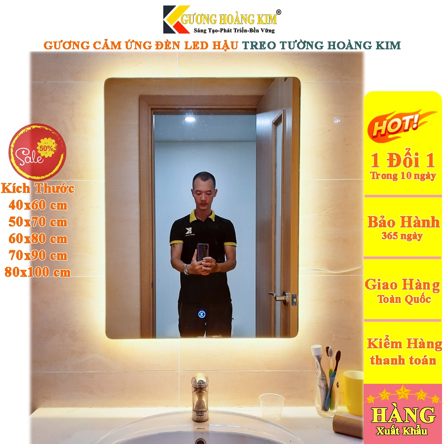 Gương led treo tường chữ nhật phòng tắm nhà tắm wc bàn trang điểm cảm ứng kích thước 60x80,70x90 cm guonghoangkim HK3012