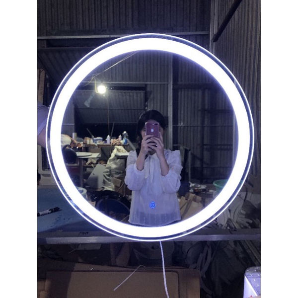 - Gương soi treo tường viền LED là sản phẩm đang được nhiều khách hàng yêu thích. Được kiến trúc sư thiết kế nội thất sử dụng thường xuyên vào thiết kế của mình. Chiếc gương tròn tạo cảm giác thoải mái không góc cạnh tạo điểm nhấn cho bức tường đơn điệu trở nên ấn tượng hơn.