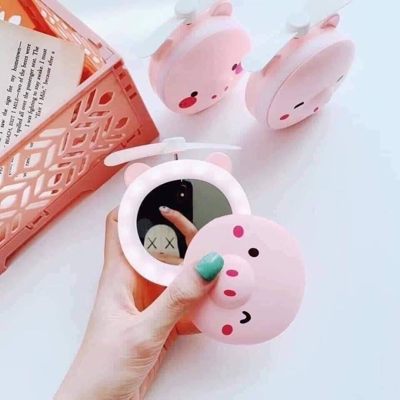 🐷 Nóng thế này có e quạt mini bỏ túi, đi đâu cần gương làm gương luôn, cần đèn làm đèn luôn, trang điểm trong bóng tối cũng vô tư đi