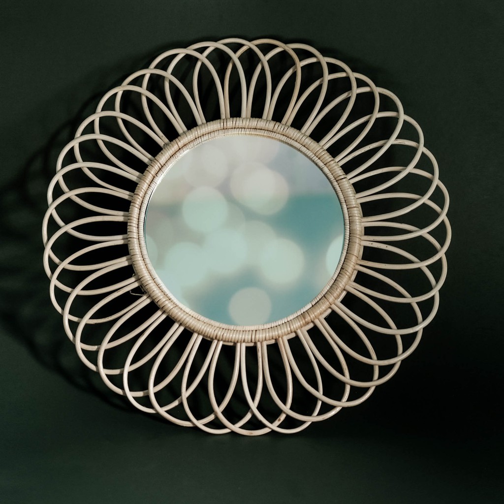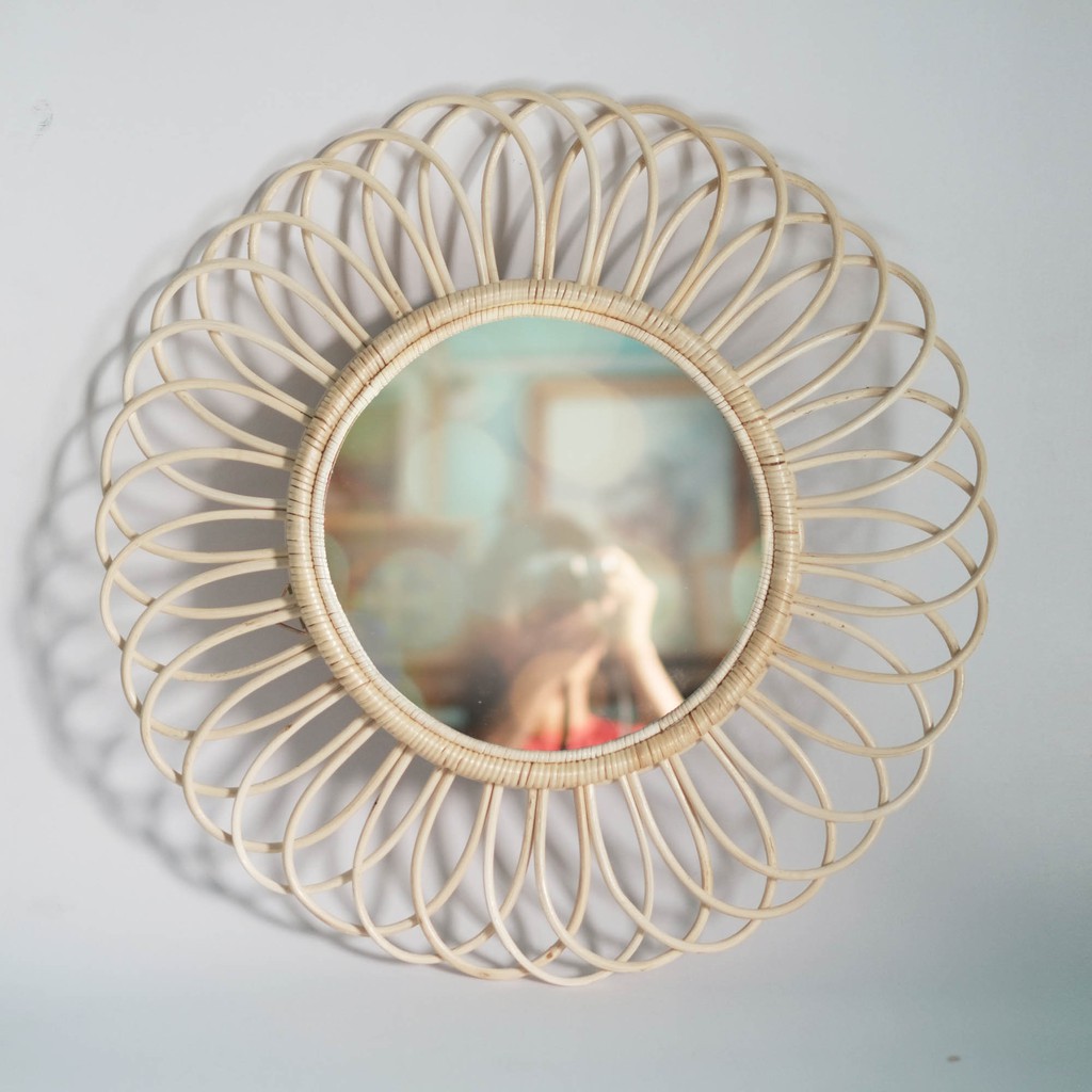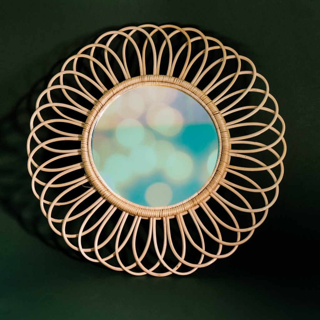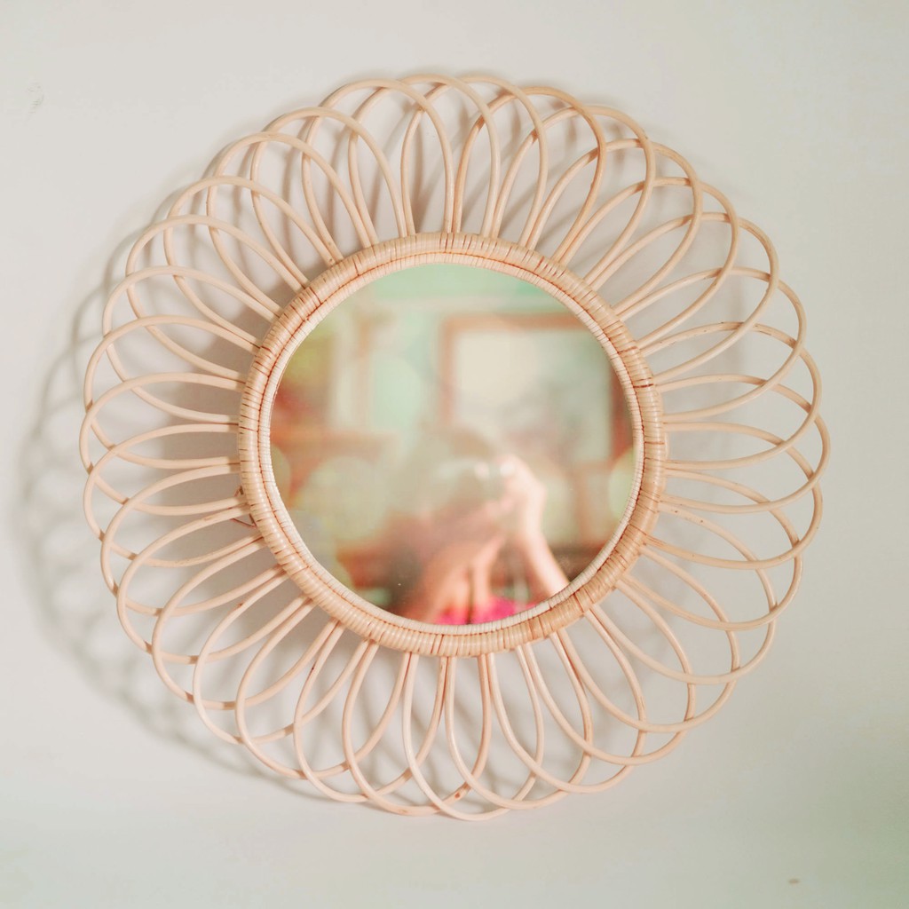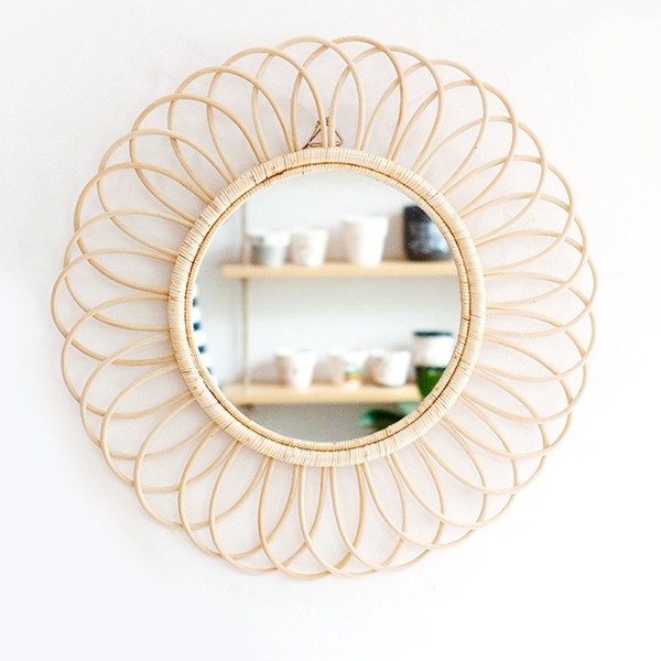 * Gương mây treo tường - Rattan Mirror - Hình hoa cúc- Được thiết kế theo phong cách boho với khung song mây uốn hình hoa