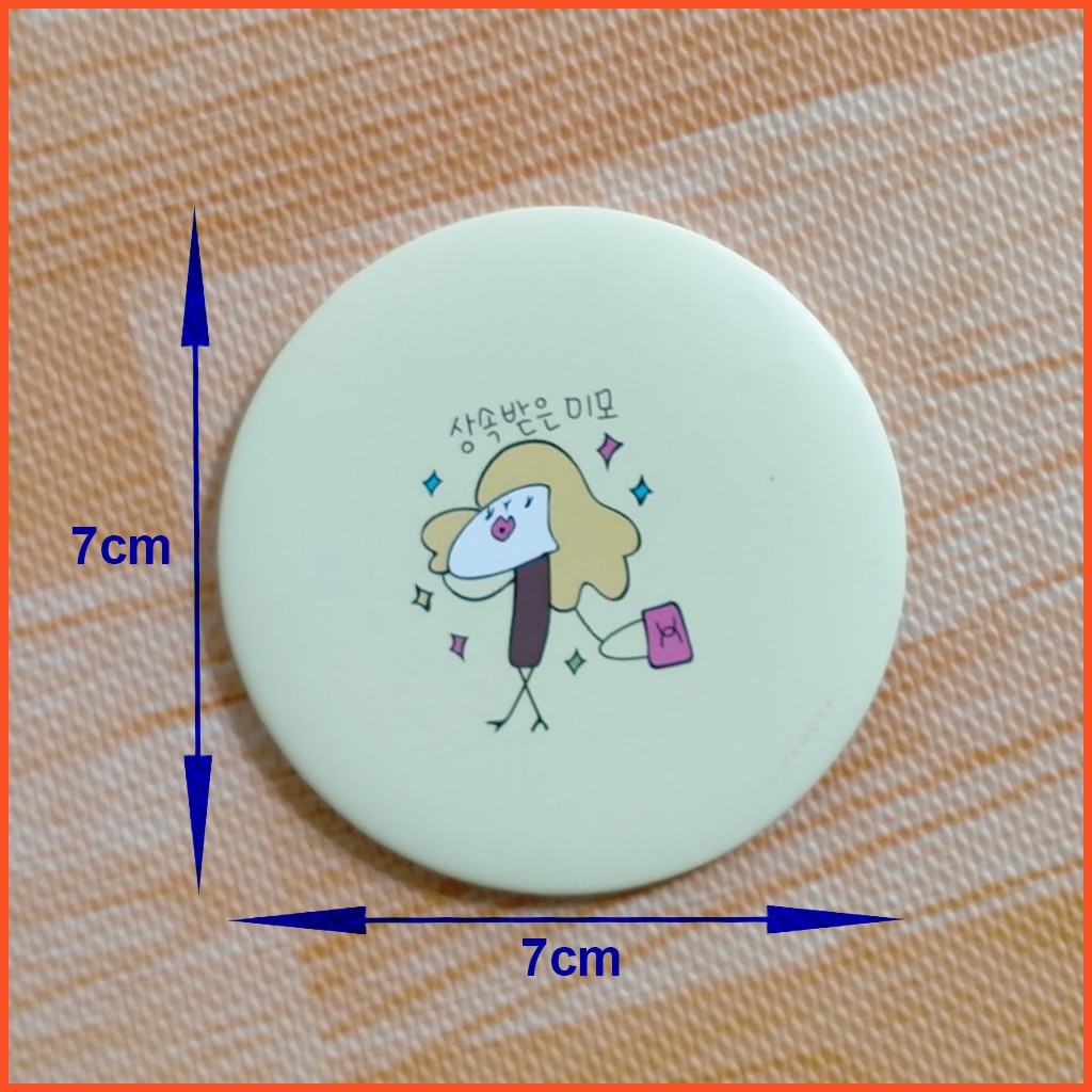 - Hình dạng : hình tròn, một mặt là gương một mặt in hình dễ thương