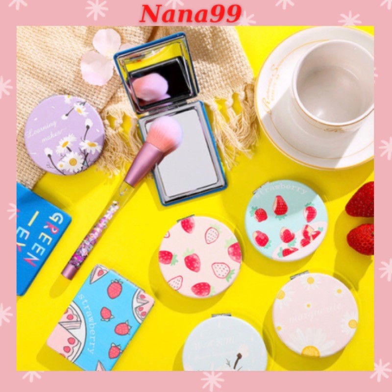 Gương Mini Cầm Tay [FREESHIP] Tròn/ Chữ Nhật Hoạ Tiết Hoa Cúc, Dâu Tây Nana GHC941