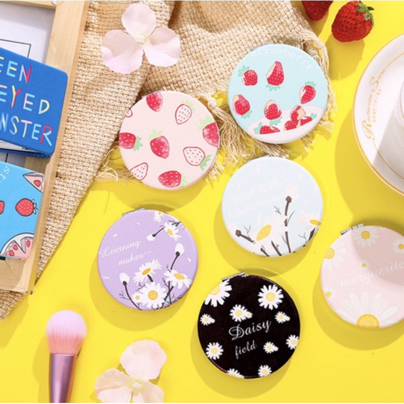 Giới thiệu Gương Mini Cầm Tay [FREESHIP] Tròn/ Chữ Nhật Hoạ Tiết Hoa Cúc, Dâu Tây Nana GHC941