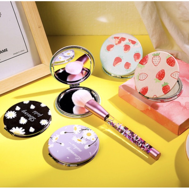 💜 - Gương SOI trang điểm 2 mặt cầm tay mini có hoạ tiết hoa cúc, dâu tây siêu dễ thương!- Chất liệu: kim loại+ Kính