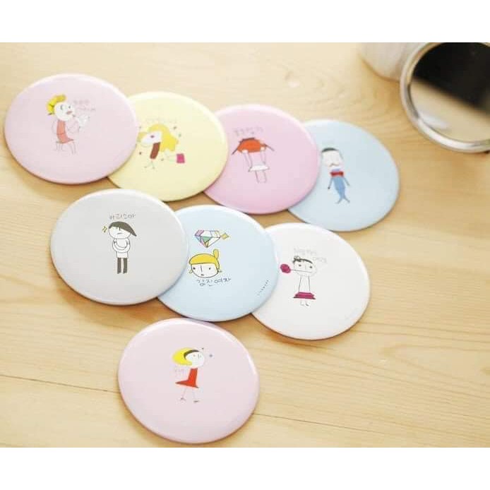 Cực kì gọn nhẹ, 1 mặt là gương, mặt sau in hình trang trí dễ thương