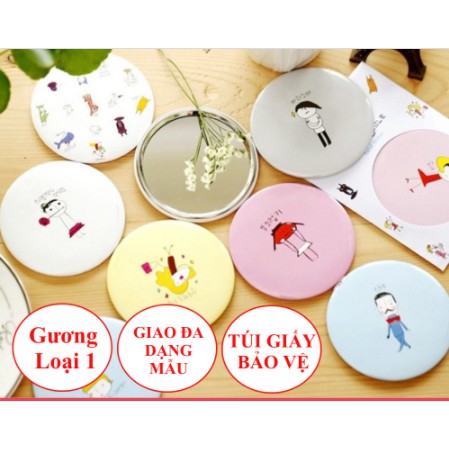 Cực kì gọn nhẹ, 1 mặt là gương, mặt sau in hình trang trí dễ thương