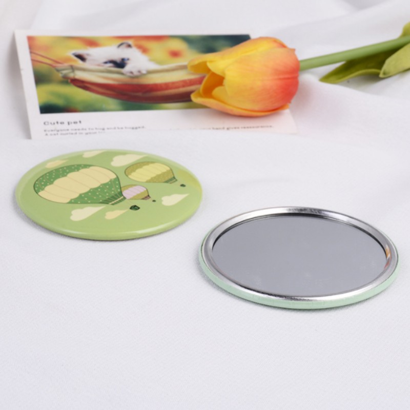 Cực kì gọn nhẹ, 1 mặt là gương, mặt sau in hình trang trí dễ thương