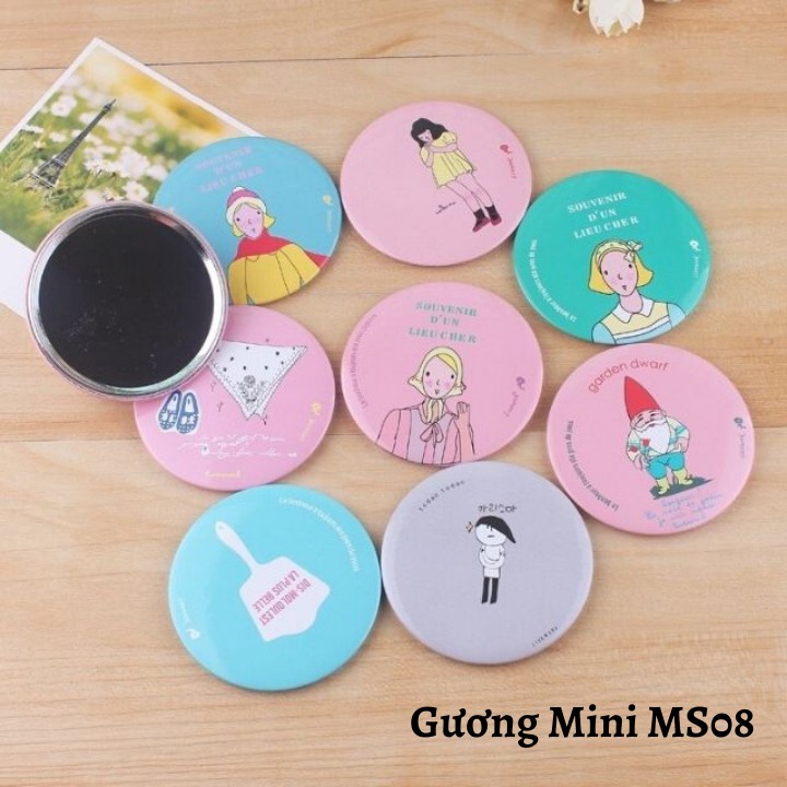 - Cực kì gọn nhẹ, 1 mặt là gương, mặt sau in hình trang trí dễ thương